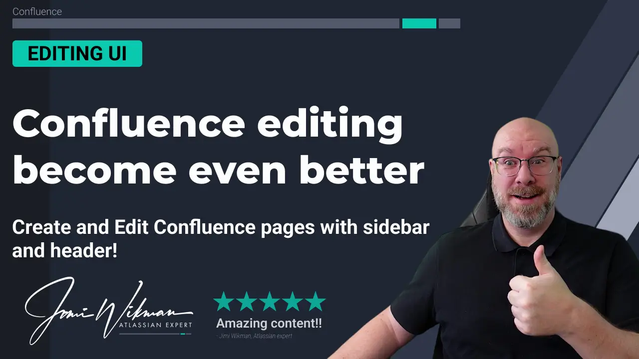 Atlassian has made the Confluence sidebar (content tree) and top navigation visible while editing! You now have access to the same editing capabilities, but with the additional context provided by the content tree and the top navigation menu. And if you like the option for full-screen, distraction-free editing, don’t worry, the sidebar can be collapsed and expanded as needed at any time. Atlassian Community Article: https://community.atlassian.com/t5/Confluence-articles/Create-and-edit-with-grea- 0 comments