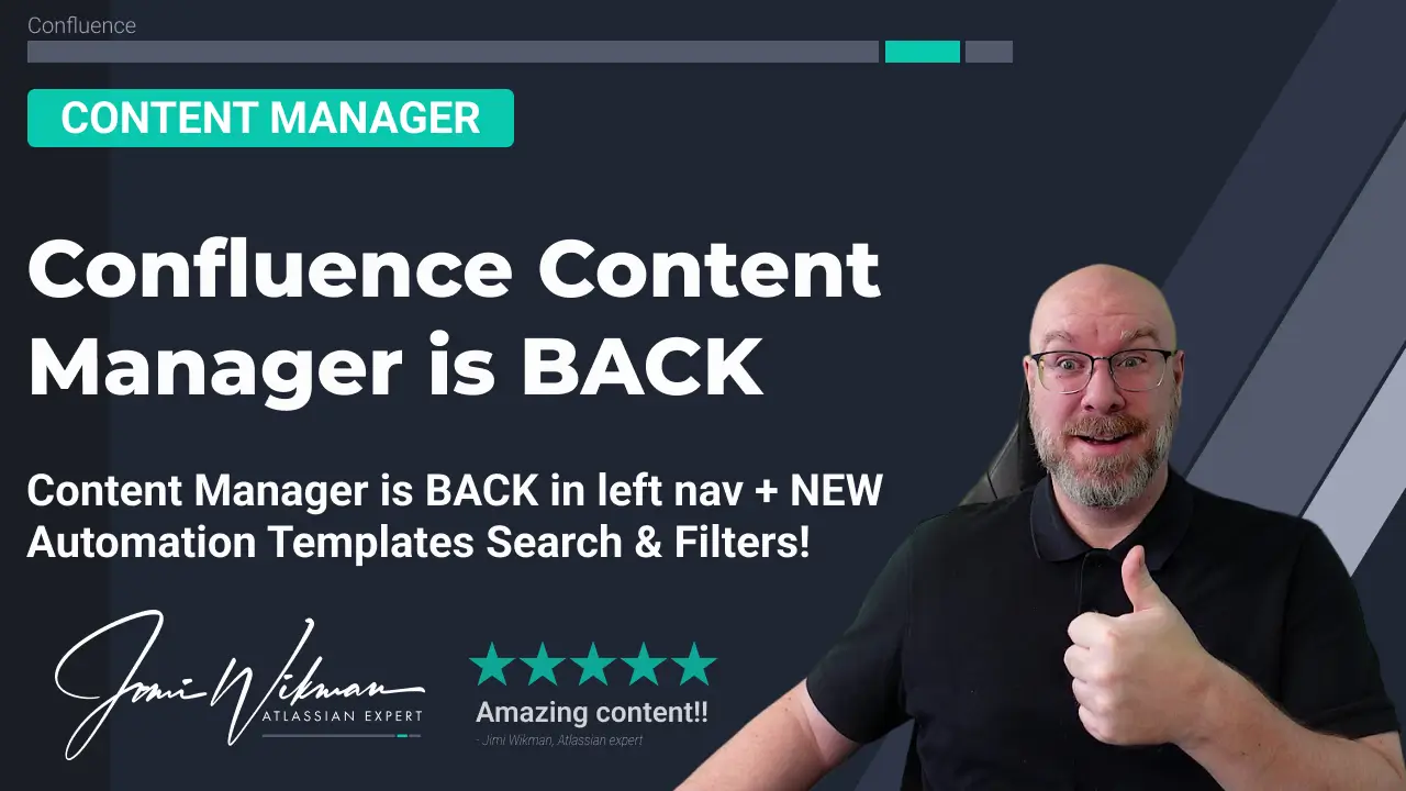 The Confluence team have brought back the Content Manager AND we get the Confluence automation templates search and filters! Previously you would have needed to find the Confluence Content Manager in your Space Settings, now you'll be able to access it directly from your left navigation. You can now directly search or filter Confluence Automation Templates based on category to make it even easier to find the template you need. Atlassian community Article: https://community.atlassian.com/t5/Confl- 0 comments