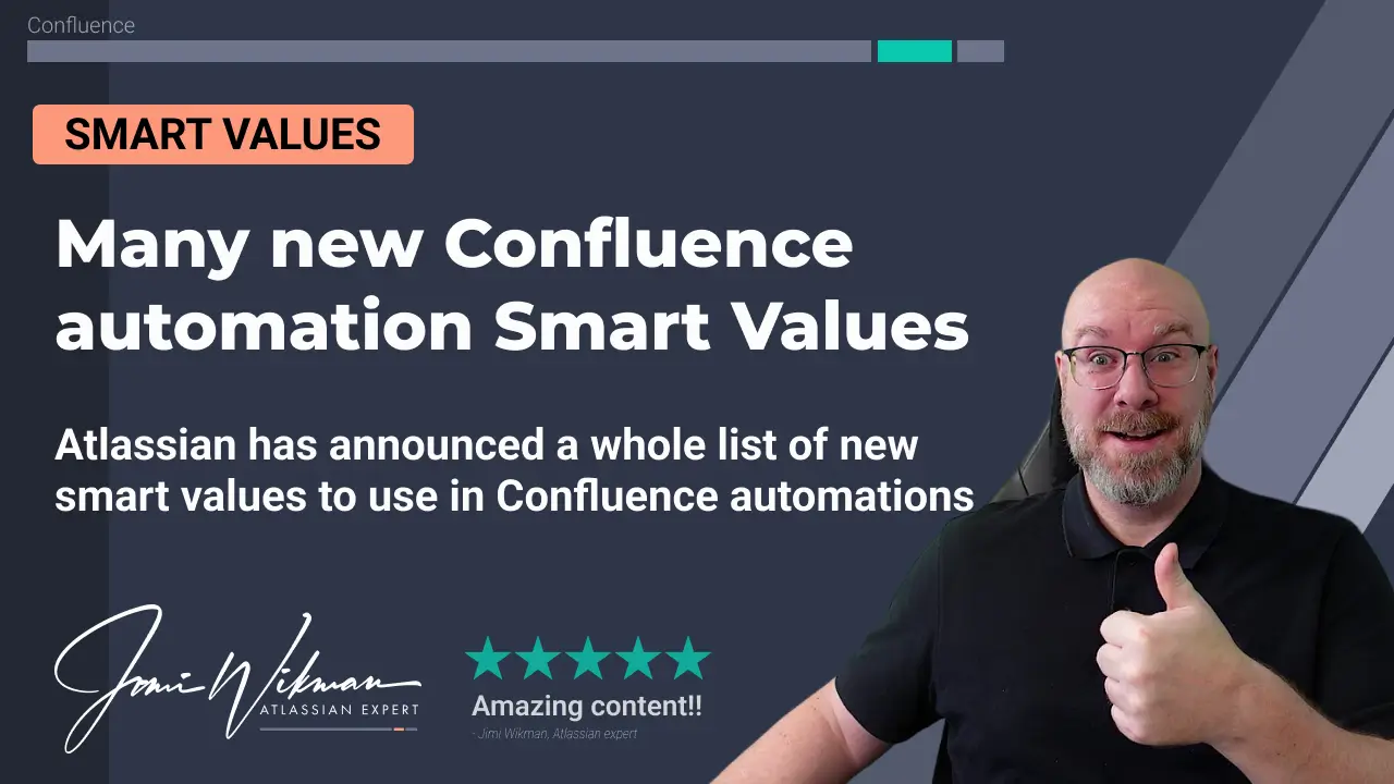 Atlassian has announced a whole list of new smart values to use in Confluence automations. You can read all about it in the Atlassian Community article here: https://community.atlassian.com/t5/Confluence-articles/MANY-New-Smart-Values-Added-to-Automation-for-Confluence/ba-p/2588511 The full documentation on smart values for Confluence automations is located here: https://support.atlassian.com/cloud-automation/docs/smart-values-in-confluence-automation/- 0 comments