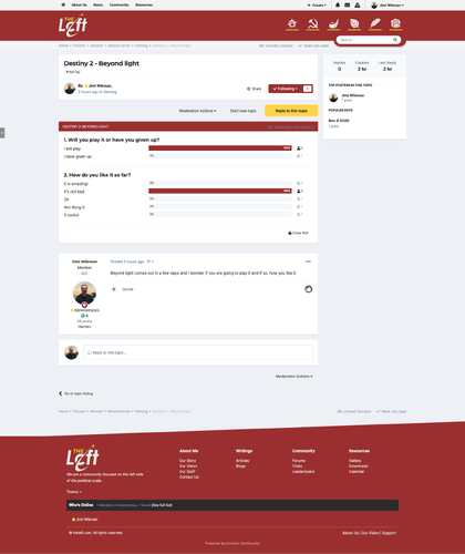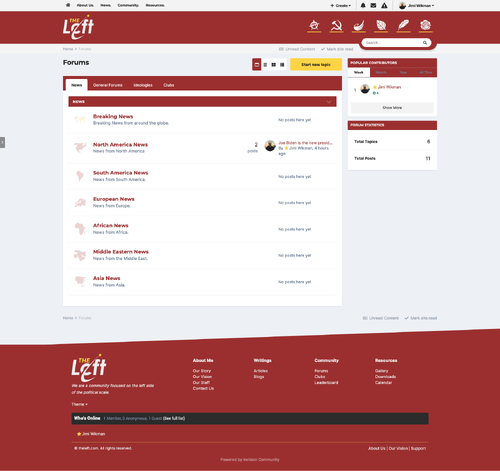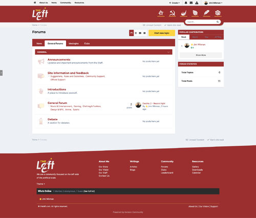 A project to create a new political community based on Invision Community focusing on the left wing of politics.